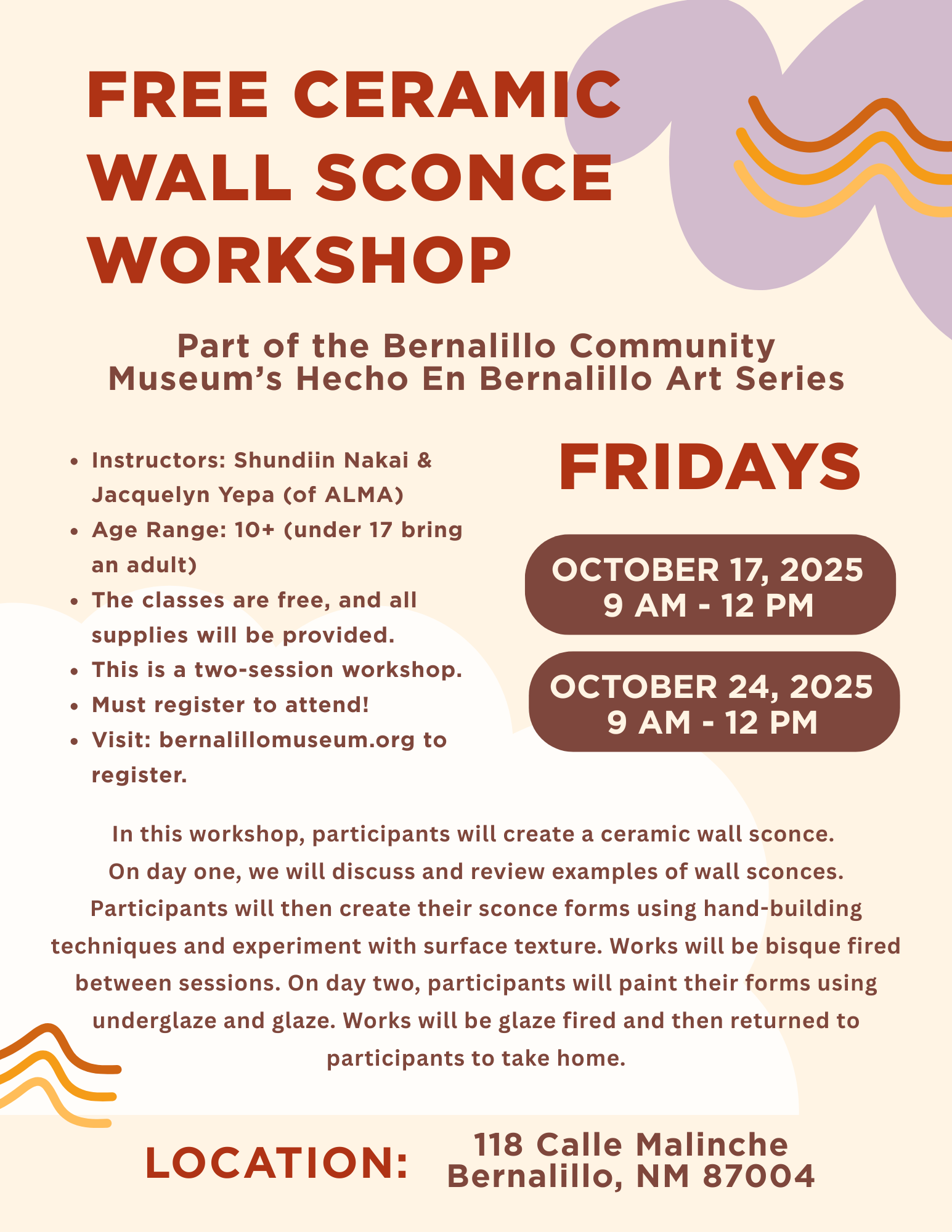 «Return to Events List | Museum EventHecho En Bernalillo Presents: Ceramic Wall Sconce Workshop