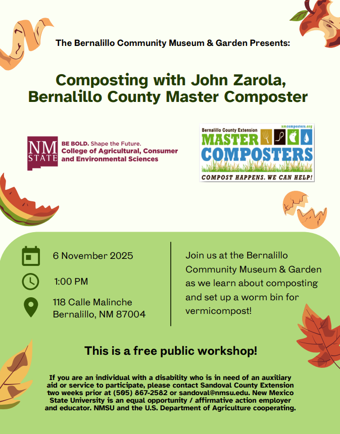 «Return to Events List | Museum EventThe Bernalillo Community Museum & Garden Presents: Composting with John Zarola, Bernalillo County Master Composter